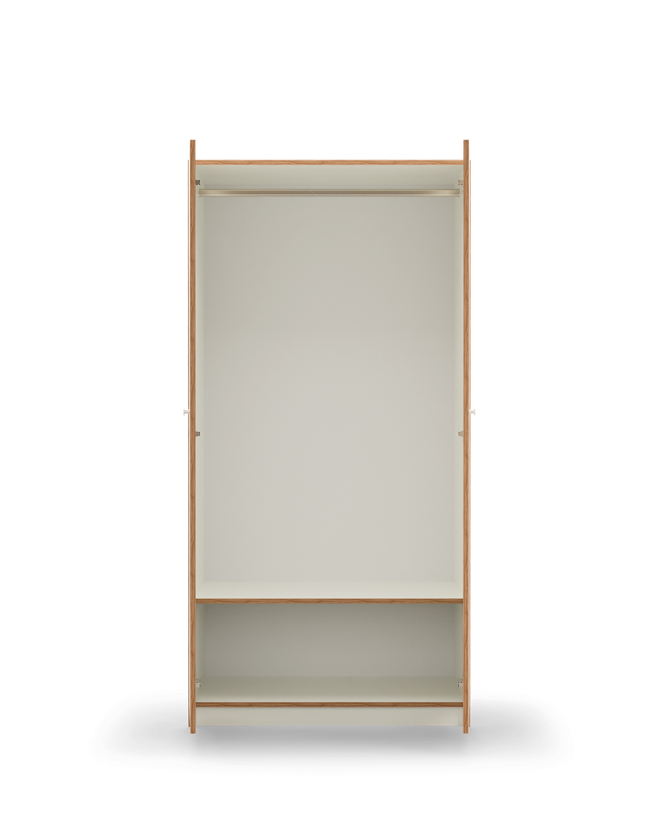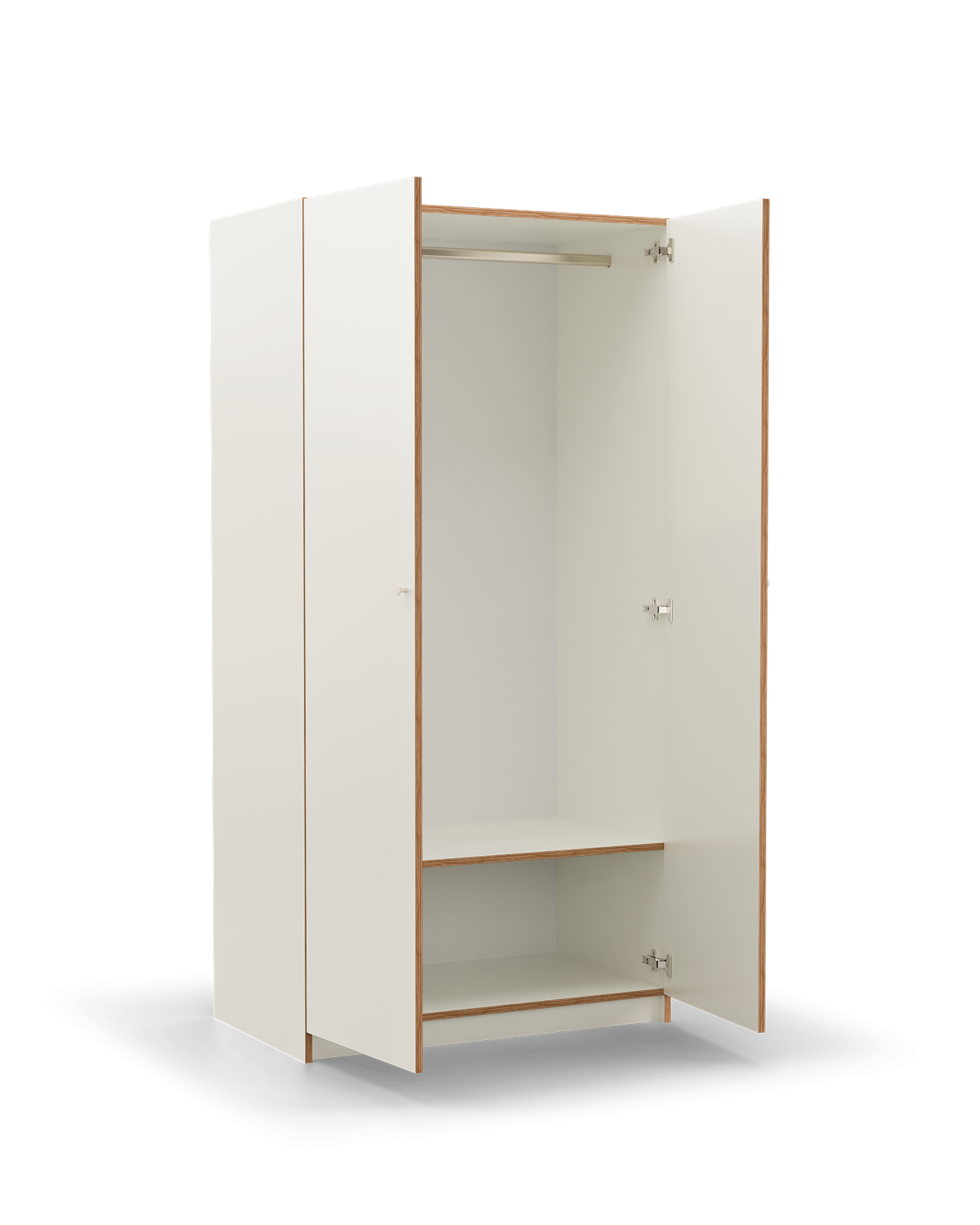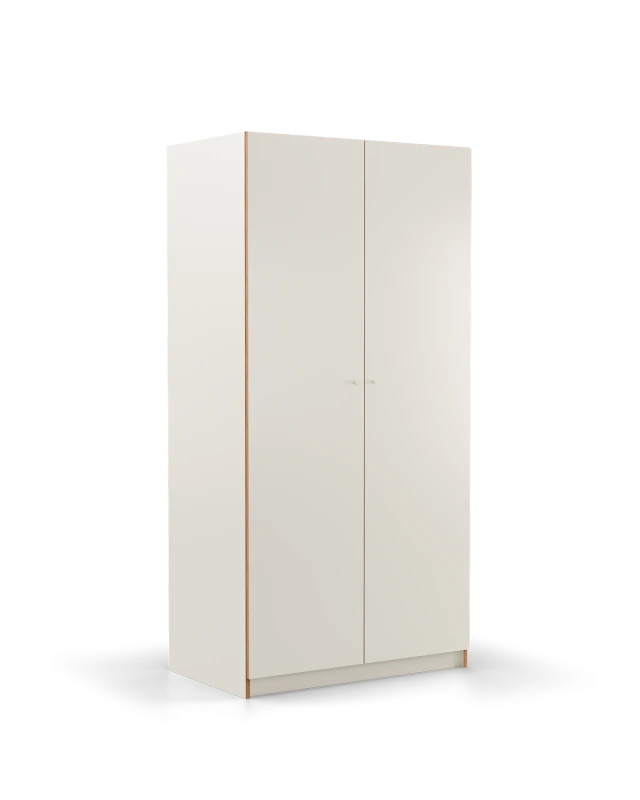 | Material: | The Vika wardrobe is made of high-quality white laminate-coated plywood with a matte finish — both the body and the fronts are 18 mm thick. The visible layered plywood edges add lightness and a natural touch to the piece. |